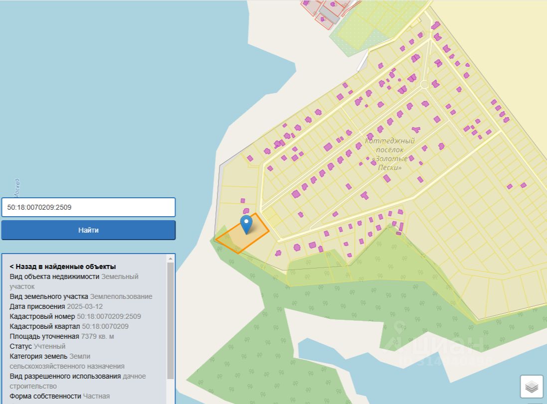 Адрес участка: Россия, Московская область, Можайский городской округ, коттеджный посёлок Золотые Пески, 273.