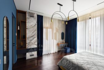 - 2-й уровень: 2 мастер-спальни собственными гардеробными (18,8 и 6,3 м2) и санузлами, холл. В одной из спален предусмотрен выход на балкон.