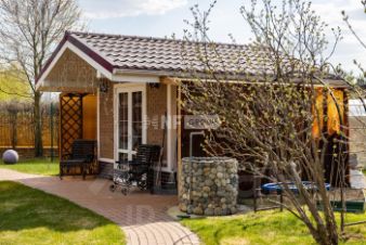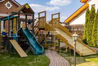 На участке летнее барбекю, домик для персонала, парковка на 2 м/м, оборудованная детская площадка.
