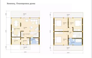1 этаж: прихожая, холл, кухня-столовая, гостинная, техническое помещение, санузел.