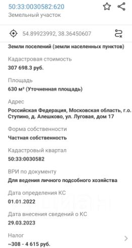 Кадастровый номер участка 50:33:0030582:*** указал продавец