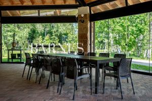Продуманная планировка участка обеспечит комфортное проживание как для вас, так и для персонала. Потрясающий собственный лесной участок с прогулочными дорожками и выходом в Истринский лес. Фасады зданий облицованы дагестанским камнем, крыши из натуральной черепицы, а стены домов и дорожки освещаются в вечернее время.