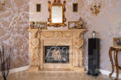 Описание внутренней отделки: выполнен дизайнерский ремонт: на 1-м этаже стены окрашены и украшены молдингом из полиуретана, в санузлах коллекционная плитка, в спальнях обои, в кабинете обои Valentin Yudashkin. Полы отделаны керамогранитом и "американским орехом", на 1-м этаже и в санузлах тёплые водяные полы. Потолок окрашен, с плинтусами, в гостиной гипсовые розетки под люстры (декоративная лепнина). На второй этаж ведёт широкая монолитная лестница (ширина от 1 м до 1,72 м), отделанная мрамором (цвет Crema Marfil), с коваными перилами с патиной (художественная ковка). Установлены межкомнатные двери, входная дверь, дверь с панорамным остеклением с выходом на участок. Подоконники из искусственного камня.