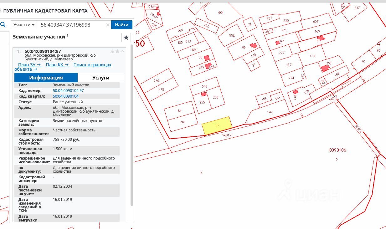 Кадастровый номер участка 50:04:0090104:*** указал продавец