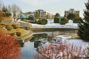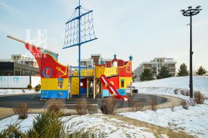 Внутри поселка раскинулся большой парк с благоустроенной красивой территорией, отделяющий поселок таунхаусов от малоэтажного жилого комплекса. В парковой зоне предусмотрены детские и спортивные площадки, площадка для выгула собак. Через всю парковую зону протекает река. На холме в парке в зимнее время года управляющая компания организовывает горки для катания детей на тюбингах. В летнее время работает ресторан. На территории поселка со стороны комплекса представлена обширная коммерческая инфраструктура (косметология, кофейня, детский центр, стоматология, клининговые услуги).