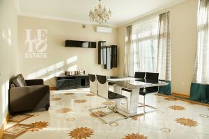 Таунхаус трехэтажный, построен в современном стиле по монолитно-каракасной технологии, внешние стены - кирпичные. В зоне кухни-столовой предусмотрен выход на террасу и участок. Участок обрамляют взрослые туи, образуя собой живую изгородь. Лестница отделана дубовой доской, ограждение кованое. В санузлах стены и пол отделаны керамогранитной плиткой. Пол в спальнях дубовая паркетная доска. В каждой комнате есть выход на балкон. Есть гараж.