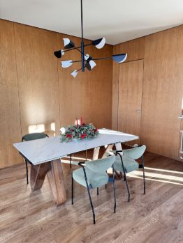 Отделка качественными материалами, на полах косвик паркет, плитка вся итальянская. В доме на первом этаже располагается прихожая, просторная гардеробная для верхней одежды и обуви, 2 санузла (в один из них можно войти из улицы, для удобства в теплый период года), просторная гостиная с камином отдельным натуральным мрамором и столовая со вторым светом, гостевая спальня.