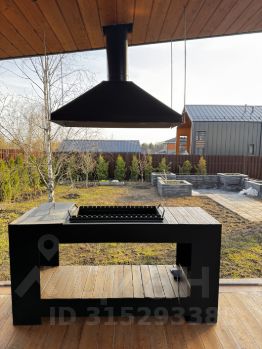 В задней часть дома просторная терраса с видом на ухоженный сад и кострище.