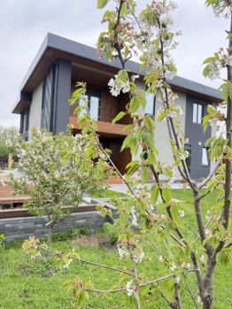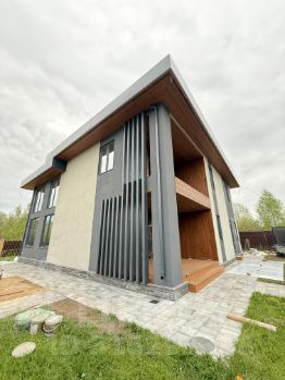 Этот дом наглядный пример современной архитектуры. Сочетание масштабных объёмов, фактур дерева, стёкла, бетона и камня, придают дому индивидуальный характер.