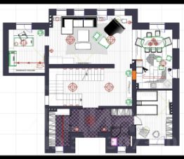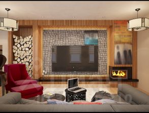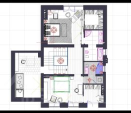 Кабинет, гостиная с камином ( установлен), столовая переходящая в кухню. Гостевая спальня, 1 санузел, гардеробная.
