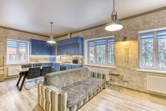 Таунхаус 145,6 кв. м (с мансардой 174 кв. м) "под ключ" в закрытом поселке блокированной застройки в с. Красная Пахра. Дом из кирпича с железобетонными перекрытиями. 4 уровня. Меблирован, оборудован техникой, полностью готов к проживанию.