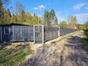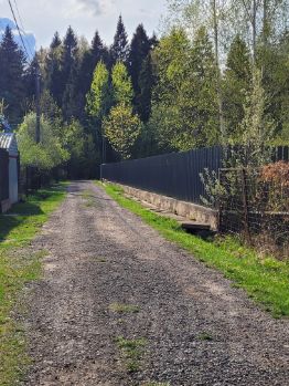 По периметру всего участка бетонный ростверк (основание) забора. По фасадной (уличной) части забор из металлического штакетника серого цвета (год установки: 2024). По тыльной стороне, со стороны леса, - рабица. Вплотную к ней забор поселка, который сейчас обновляется силами администрации. Можно оставить только его, если будет краше внутреннего. Выход в лес совсем рядом.