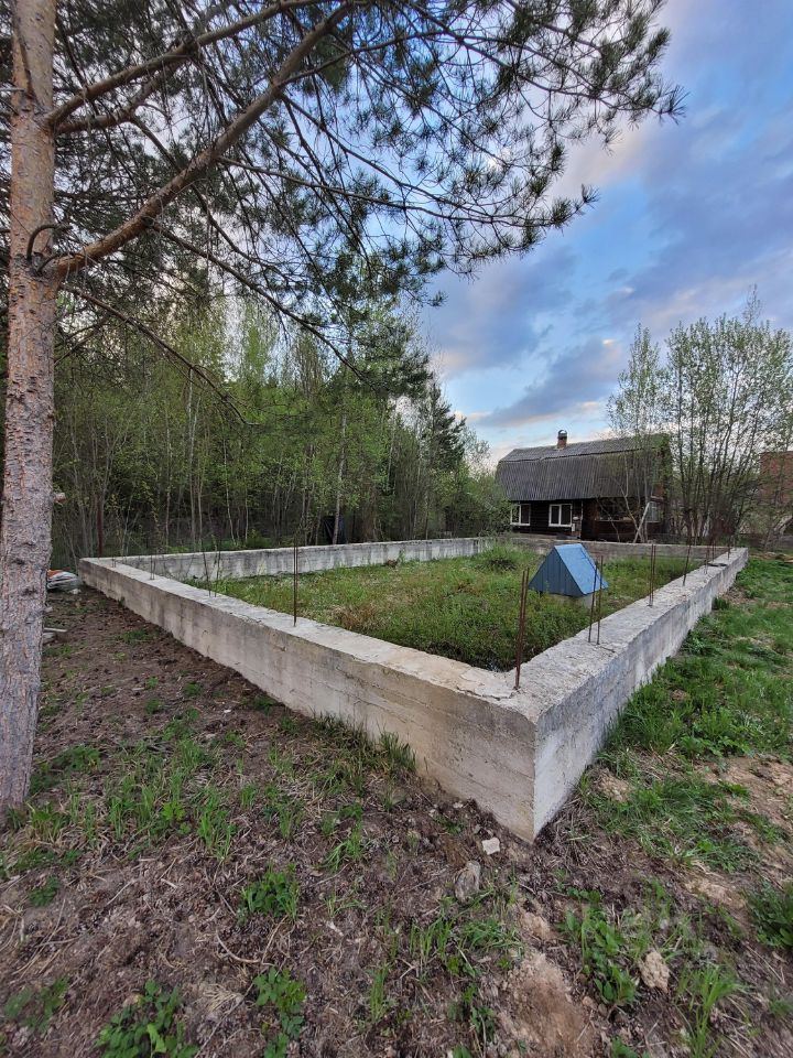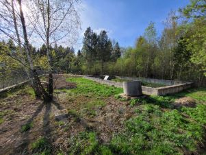 В глубине участка установлен ленточный фундамент прямоугольной формы 17х10 м, расположенный длинной стороной параллельно улице. Состояние фундамента хорошее. В зависимости от проекта дома можно его использовать самодостаточно (для легких конструкций), либо с доработкой (засыпка и плита). Внутри периметра фундамента имеется колодец с хорошей по питьевым качествам водой.