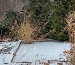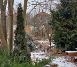 На участке множество Декоративных деревьев и кустарников. В том числе туи, сосны, ели, магнолии, лириодендрон и др. Есть три декоративных прудика с нимфеями.