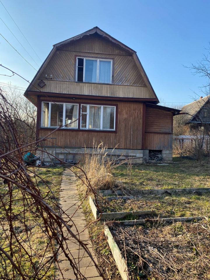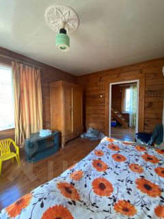 Большой дом: 2 этажа, брус 150 мм, обшитый вагонкой, на блочном фундаменте, дровяная печь-плита, крыша - шифер. На первом этаже: две комнаты с общей печкой, веранда. На втором: комната и веранда, и две небольшие кладовки под боковыми скатами крыши.