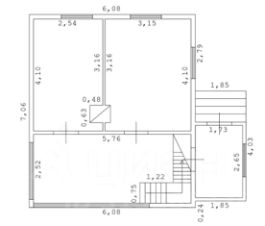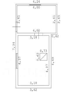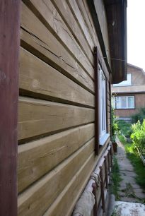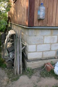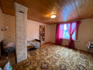 Маленький дом: 1 этаж, брус 150 мм и бревно, кухня и комната. Дровяная печь-плита с сушкой. Водонагреватель и раковина со сливом, газовая плита (газ - балонный). С торца дома есть пристройка для инвентаря.