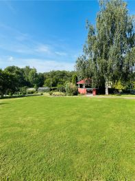 Участок граничит с лесным массивом, рядом ручей, пруд, тихо, красиво, чистый воздух.
