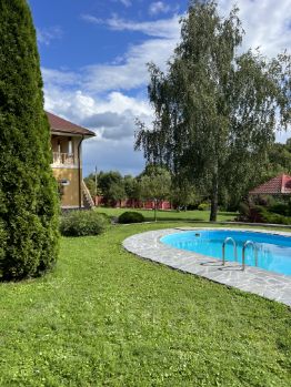 На участке: гараж, бассейн с возможностью газового подогрева (обновлено оборудование фильтрации, заменена пленка в августе 2024 г.), баня, 2 теплицы, беседка, автоматические ворота на пульте, ландшафтный дизайн, плодовые деревья, кустарники, множество красивых крупных разного вида хвойных деревьев, отдельный выход в сторону леса, соседи живут постоянно, над баней небольшое помещение для полноценного проживания (с мини-кухней и с/у).