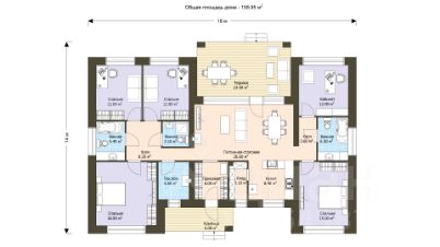 Одноэтажный дом подойдет для семьи из 4-6 человек. Имеет очень удачную эргономичную планировку.