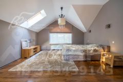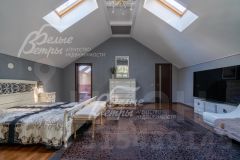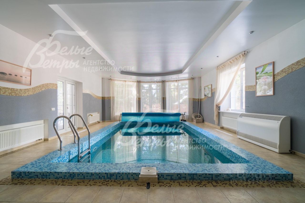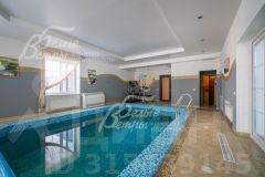 Код объекта в БД Агентства: 208-450. ВИК к/п. Изысканный и элегантный кирпичный дом в стиле современной архитектуры со скиммерным 6-метровым бассейном, сауной, домашним кинотеатром, функциональной и комфортной планировкой. В доме: большая крытая терраса, гостиная с камином и вторым светом, панорамные окна, 5 спален (одна - на первом этаже), отдельная жилая зона для взрослого ребенка, гараж. Дом снаружи и внутри отделан премиальными материалами, меблирован (элитная мебель) и оснащён техникой. На лесном живописном участке высажено более 60 вековых елей, декоративные кустарники и цветники, дорожки вымощены натуральным диким камнем, есть зона отдыха с качелями и барбекю. Дом находится в тихом охраняемом коттеджном посёлке бизнес-класса.