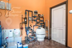 Инженерное обеспечение: в доме два газовых котла Buderus (100 кВт каждый), бойлер Drazice 300 л и комплексная система очистки воды Ecomaster (с умягчением и другими функциями). Вентиляция естественная. На панорамных окнах 1-го этажа рольставни. Установлены ионизаторы воздуха, освежители воздуха в бассейне и в санузле второго этажа, стальные радиаторы. Электрика Legrand. Есть датчики движения в гараже. Дом на пультовой сигнализации с видеодомофоном.