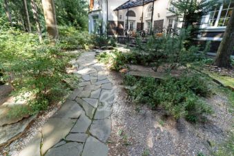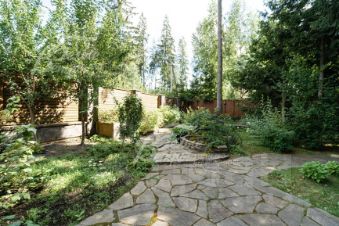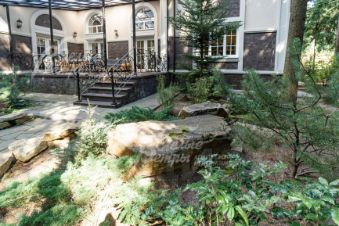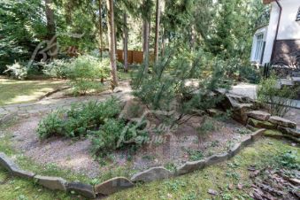 Благоустройство участка: выполнен проект ландшафтного дизайна: высажено более 60 взрослых елей, дорожки вымощены натуральным диким камнем, высажены декоративные растения и кустарники, цветники. По периметру участка проходит дренажная система.