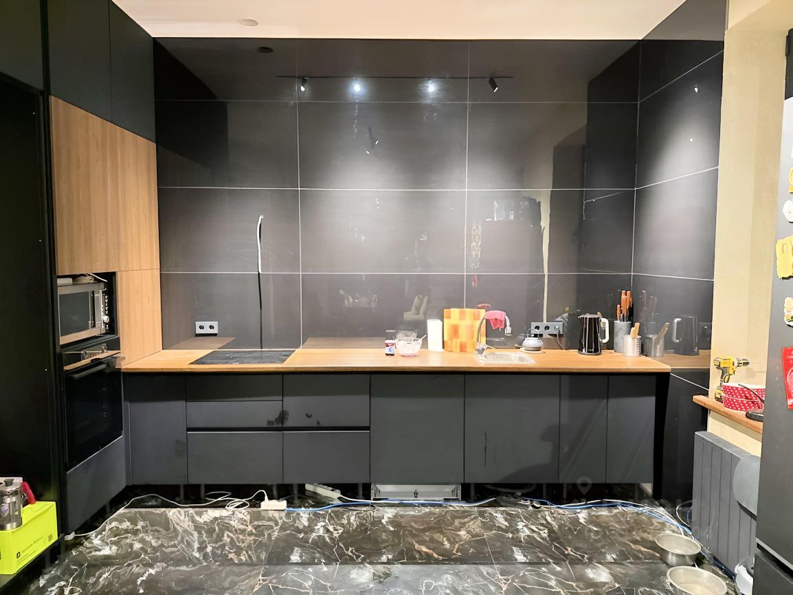 Кухня со встроенной техникой(посудомоечная машина, варочная панель, духовой шкаф, микроволновая печь, холодильник.)