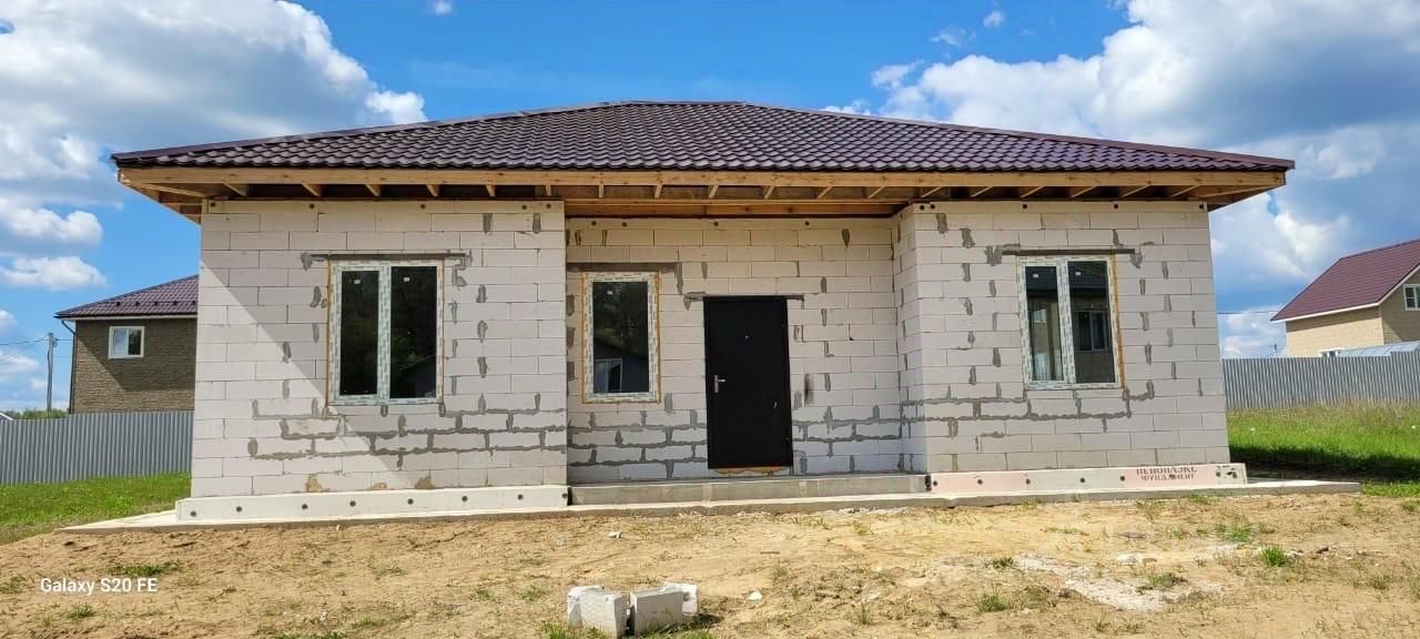 Продается одноэтажный дом , расположенный в экологически чистом районе. Дом выполнен из прочных блоков марки Д-500, что обеспечивает надежность и долговечность конструкции. Крыша покрыта металлочерепицей коричневого цвета, придающей дому эстетичный внешний вид.
