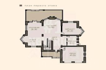 1 этаж - холл, гостиная с камином, тв-гостинная, кухня, столовая, кабинет, котельная, гараж на 2 м/м,