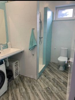 Первый этаж: кухня-гостиная 45 кВ.м, спальня 12кв.м, сан.узел с душевой 6 кВ.м, бойлерная 6кв.м, большой коридор и кладовка. Второй этаж: 3 спальни, ванная комната с окном, кладовка.