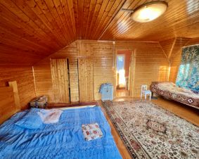 Продается дом 2009 года постройки, размером 6*8м из бруса 150*150, на ленточном монолитном фундаменте монолитная бетонная плита. Дом снаружи обшит сайдингом, внутри вагонкой. Окна- стеклопакеты. Дом обустроен- на первом этаже кухня, туалет, душ.кабина, гостевая и хозяйская спальня. На втором этаже большая изолированная от лестницы комната 30кв.м. со встроенными шкафами. Участок сухой, разработанный, прямоугольной формы 20*30м с плодовыми деревьями и кустарниками. На участке имеется баня, построенная из бруса в 2016 году, размером 6*6м, новая- не пользовались. Водоснабжение из колодца из 8 колец- в 4х всегда есть вода. Ввод воды в дом с помощью автоматической насосной станции. В сан.узле: раковина, унитаз, душевая кабина, бойлер на 100 литров. На кухне газовая плита, раковина с хол/горячей водой.