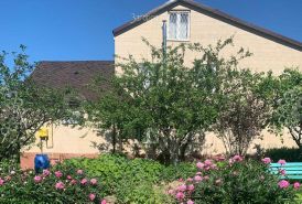 Участок. 11 соток: домик-хозблок, который может быть летним домом, теплица, беседка, барбекю; выполнены ландшафтные работы, посажены декоративные и плодовые деревья и кустарники, газон, цветы. Участок. огорожен забором из металлопрофиля, фасадная часть - кованая металлическая с распашными воротами.
