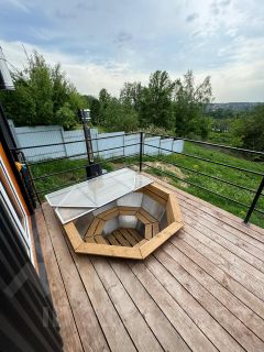 Подогреваемый уличный чан, а так же баня отличное решение для уютных вечеров с панорамным видом на город
