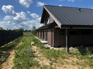 В собственности с 2023 года. Строился под заказ с регулярным надзором для себя (семья с тремя детьми). Изначальный проект был доработан и увеличен.