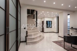 Входя в дом, вы окунаетесь в атмосферу роскоши и изысканности, созданную с помощью щедрого использования натуральных материалов. Красота мрамора, пронизанного прожилками, встречает вас в просторном холле, плавно перетекая в изысканную отделку лестницы. Мягкий, тёплый свет, проходящий сквозь полупрозрачные плиты оникса, создаёт неповторимую игру света и тени, подчёркивая глубину и текстуру камня. В просторных комнатах под ногами мягко шуршит благородный дубовый паркет, его насыщенный цвет и неповторимый рисунок говорят о высоком качестве и долговечности. Стены украшают эксклюзивные обои Missoni, тканые полотна, сотканные из сложных геометрических узоров и богатой цветовой палитры, добавляют в интерьер динамики и яркости, идеально сочетаясь с благородной сдержанностью натурального камня и дерева. Каждая деталь свидетельствует о безупречном вкусе и стремлении к совершенству. Этот дом не просто место жительства, а настоящее произведение искусства, где каждый элемент создаёт неповторимую атмосферу утончённости и комфорта.