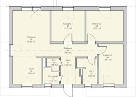 Одноэтажный дом площадью (87,6 км м.) 3 комнаты и кухня совмещенная с просторным залом
