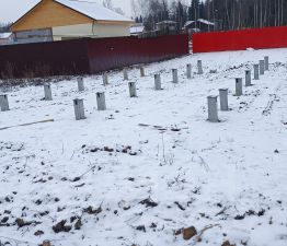 На участке проведён свет (Россети) , забиты сваи ЖБИ для дома(уже можно начинать строиться). Также если у вас уже есть другой проект, сваи можно убрать.