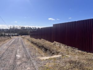 Земельный участок огорожен, ровный и сухой, посажены деревья.