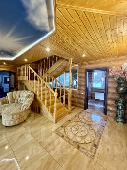 Год постройки 2009 г. Общая площадь 500 кв.м..Построен из не оцелендрованного бревна, финская пропитка. 1 этаж между цоколем перекрытия монолитная плита. Перекрытия между 1 и 2 этажом деревянные. На первом этаже стены частично из натурального камня и бревна. Крыша металл-черепица.