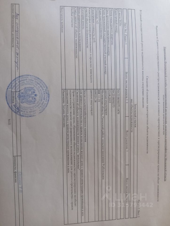 Кадастровый номер участка 50:23:0050373:*** указал продавец