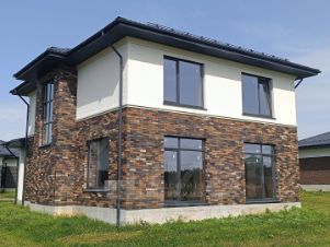 Дом имеет 4 спальни, 2 санузла, большую кухню-гостиную . Материал стен керамический блок ,кровля металлочерепица. В поселке собственная скважина, септик также установлен на участке, газовое отопление (весь поселок полностью газифицирован) асфальтирование (широкие дороги до 11 метров)