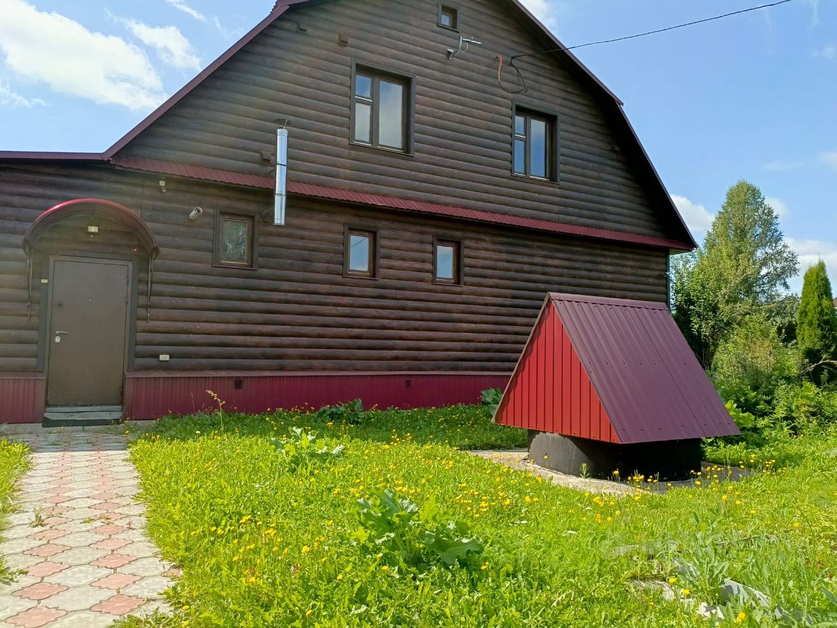 2х этажный из бревна на ленточном фундаменте, фасад обит блок-хаусом из лиственницы и утеплителем, что обеспечивает дополнительную защиту бревна и утепление, крыша- металлочерепица.