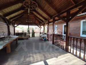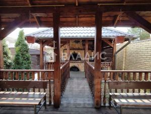 Участок огорожен со всех сторон капитальным забором, территория ухожена на ней растут плодовые деревья, хвойные деревья, кусты, ягодные кусты, стоит теплица, вольер для собаки. Въездная площадка перед домом, вымощенная плиткой, придаёт территории ухоженный и стильный вид.