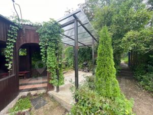 Дом - двухэтажный, деревянный обшит сайдингом, подведен свет 7 Квт, туалет уличный, вода - летний водопровод. Так же на участке имеется летняя кухня, хоз блок для хранения садового инструмента и баня.
