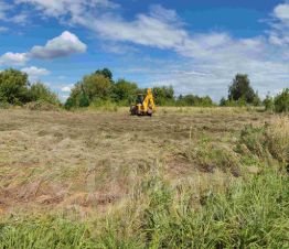 Участок ровный, размеченный геодезом, имеется электричество 15кВт.