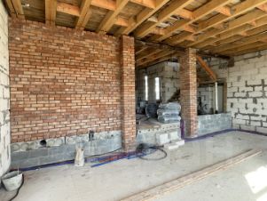 Дом 366,7 м2 из газобетоных блоков, фундамент - монолитная плита, кровля - металлочерепица, окна - стеклопакеты. Без внутренней и внешней отделки, зарегистрирован.