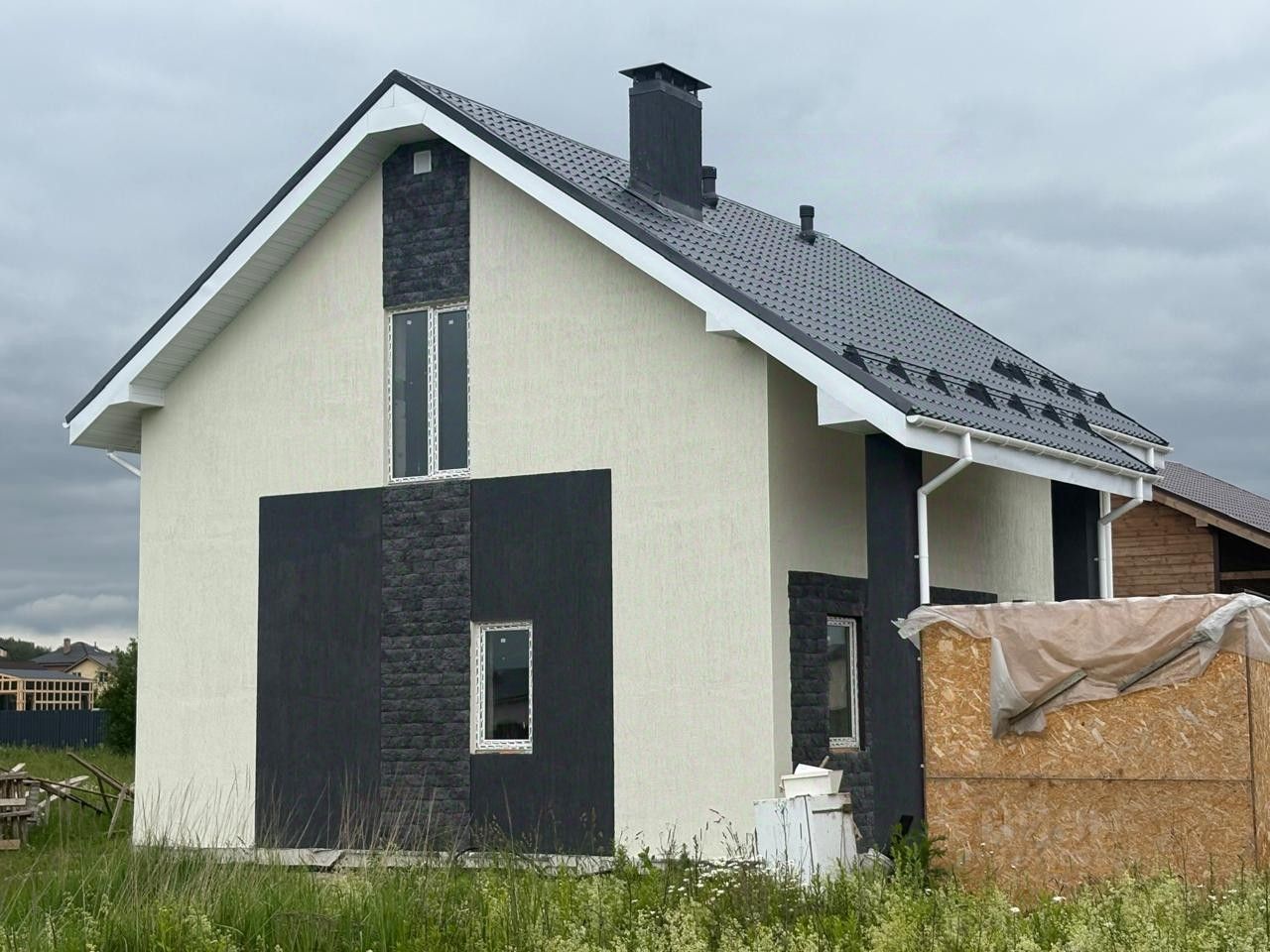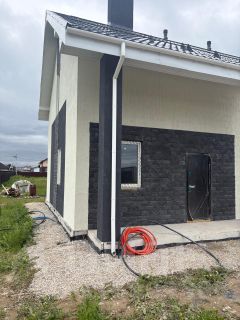10) Внешняя отделка дома короед + плитка фасадная.