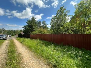 Участок огорожен сплошным забором, есть заезд для машины.