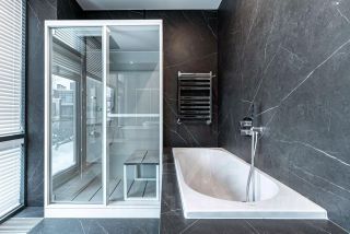 Танхаус оснащен камерами видеонаблюдения, дистанционным контролем за отоплением с возможностью задавать желаемую температуру на каждом этаже, системой охраны и удаленной связью через домофон, бесшовным интернетом и усилителем сотового сигнала.
