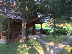 Участок 25 соток прямоугольной формы, очень ухожен, выровнен и засеян газоном. Растут большие сосны, много цветов и плодовых деревьев. Есть артезианская скважина, колодец и беседка.